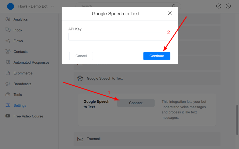 After you create your API key, go to Todook > Settings > Integrations > Google Speech to Text.