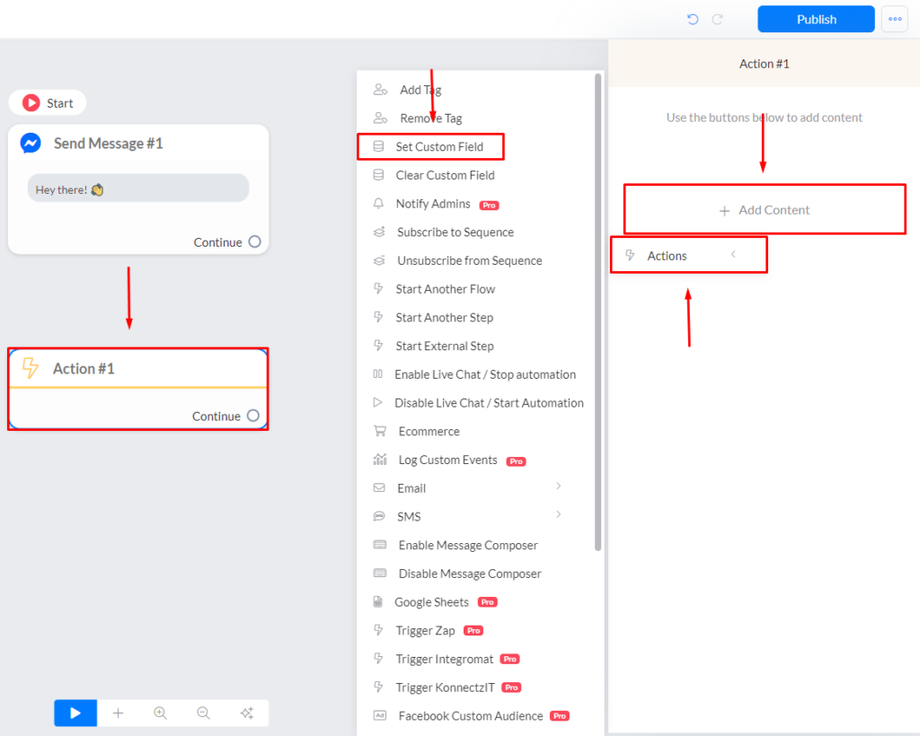 Step 2: Select Action on the block builder and choose Set Custom Field.