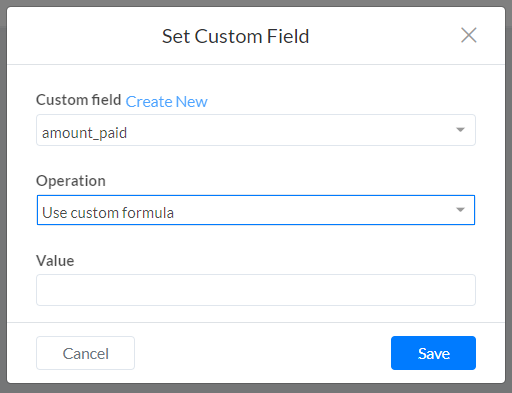 Step 3: Select the “custom field” on the flow and set up the wizard by choosing the existing custom field (Which you stored the values as number) and choose to use a custom formula on the operation, then set the custom formula that you want on the Value field.