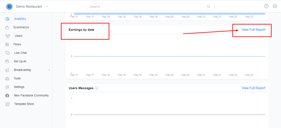 The sales analytics on the dashboard section will give you all the details on the sales which you made with the Messenger chatbot