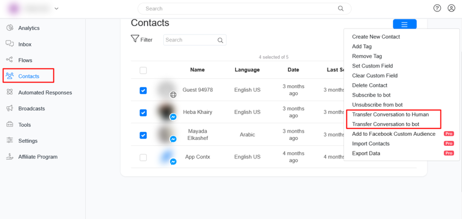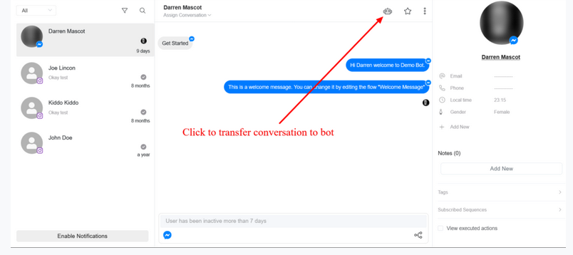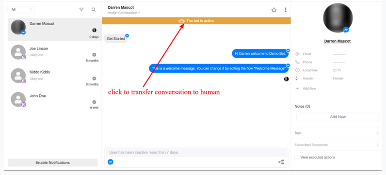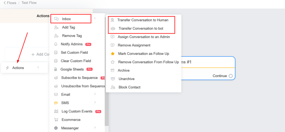 You can transfer conversation to human in the inbox