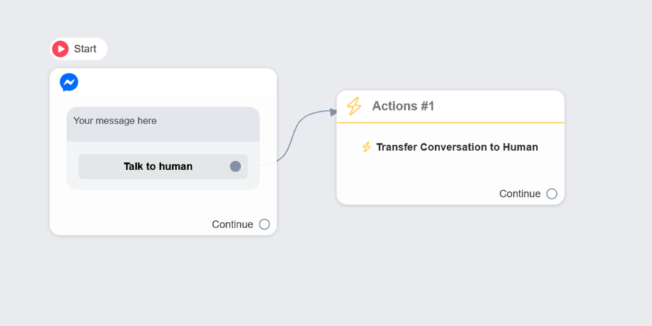 You can transfer conversation to human or bot in the flow builder