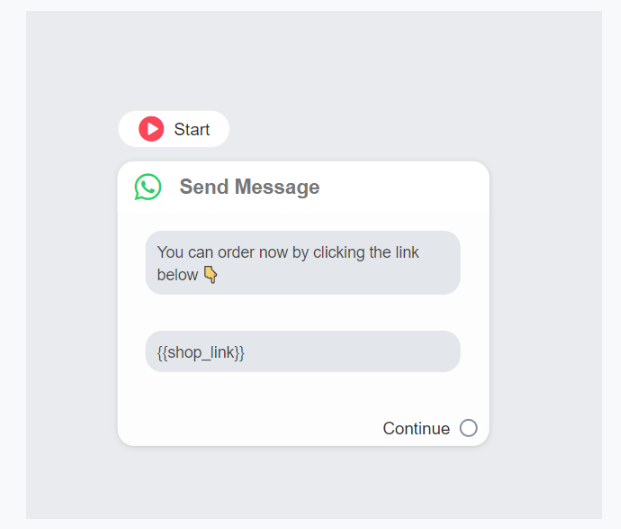 For channels that doesn’t support buttons like SMS or WhatsApp, you can use the {{shop_link}} inside a text block like the image below.