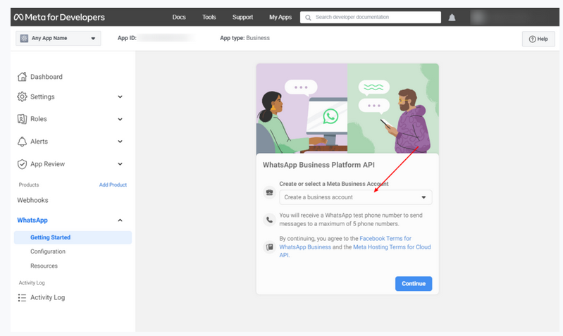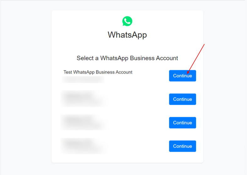 Select the Business Account that owns the Phone Number you want to use for WhatsApp Automation. If you don’t have a Business Account, Facebook will automatically create one for you.