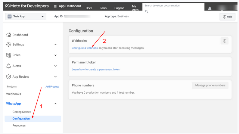 From the App Dashboard, click on the app you would like to connect to WhatsApp. Scroll down to find the “WhatsApp” product and click Set up.