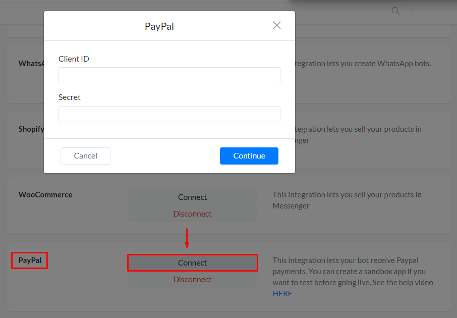 In this integration field, you need a Client ID & Secret of your PayPal account.