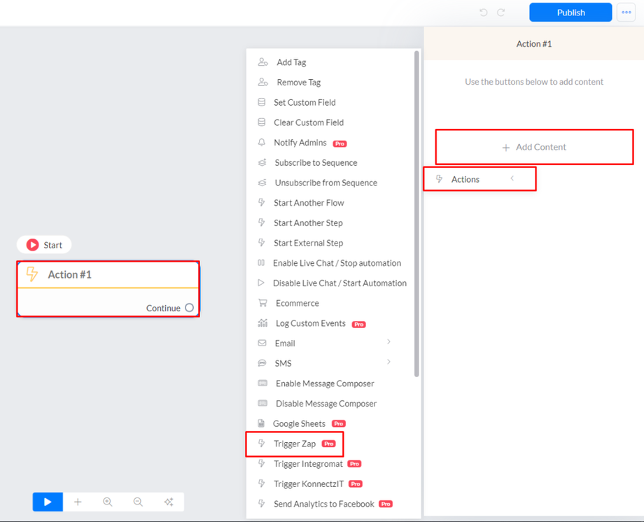 In the Todook platform, you can trigger a zap by performing it as an action inside the flow builder. Just go to actions -> Trigger Zap and give your zap event a name. Afterward, press the publish button in the top right corner to publish the flow and head over the Zapier to find your event you just created inside of Todook.